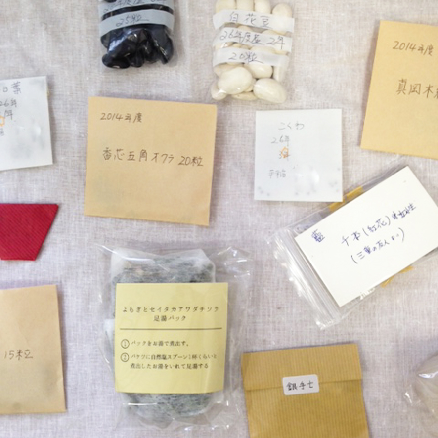 タネの他にも手作りした野草の足湯パックや手作りキャンドルなども混じっており、