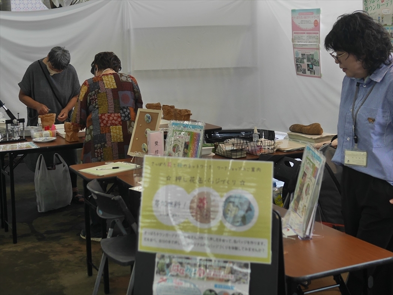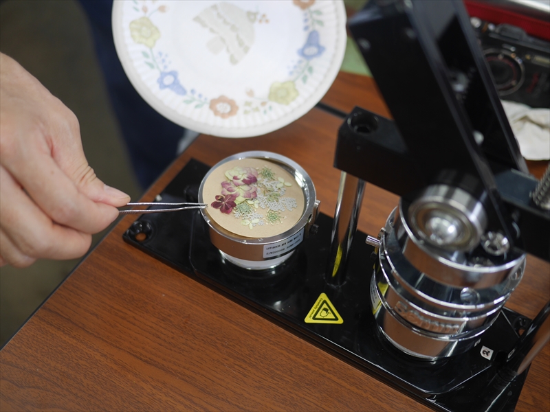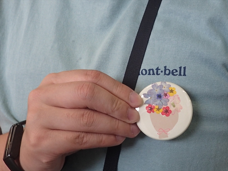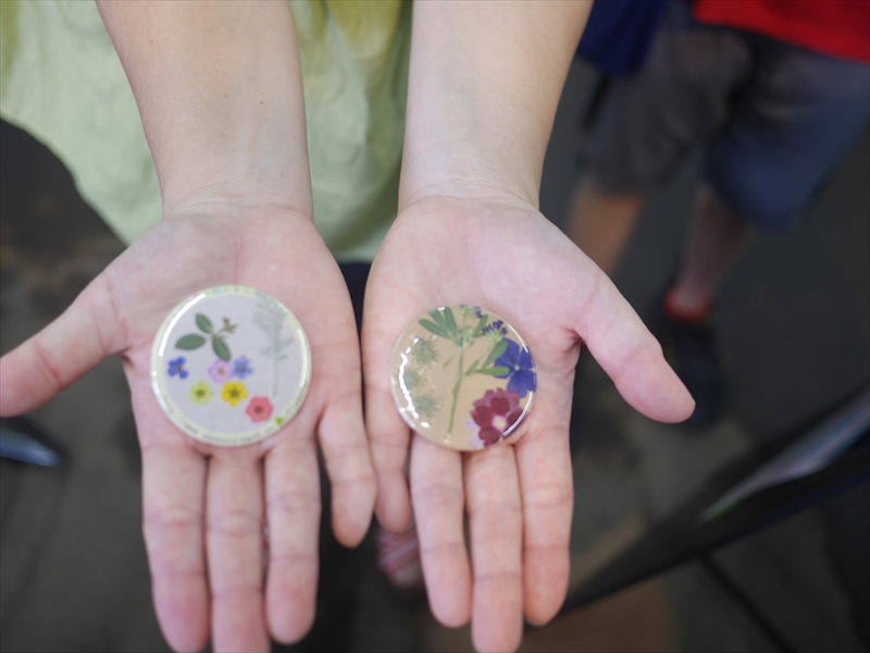 「2024北国の鉢花まつり 夏の展示即売会」で押し花の缶バッジつくりを行いました