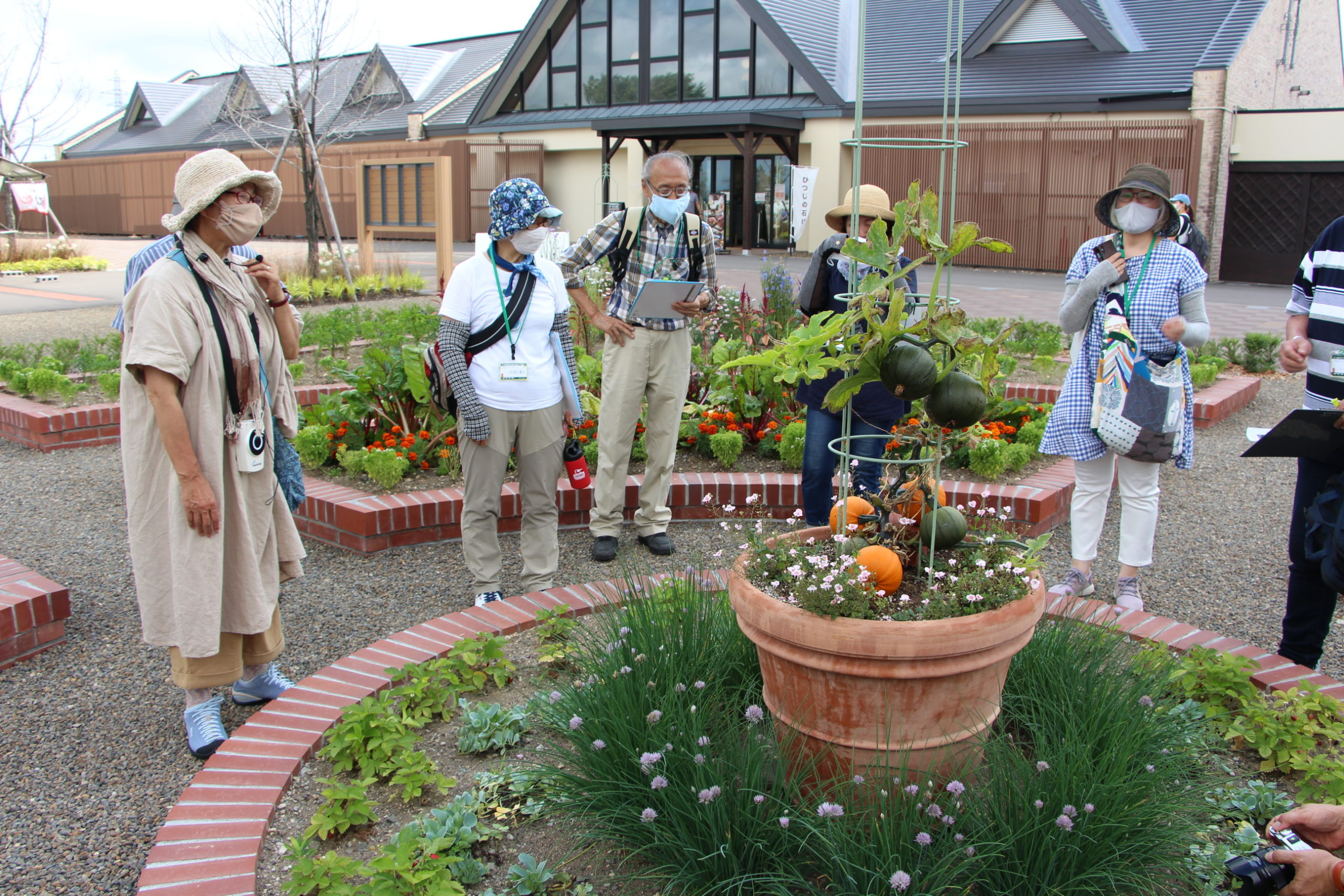 市民が講習会や写真展を開催し、交流する場と活用できる建物と庭がある暮らしを恵む庭。自宅で取り入れやすいキッチンガーデンや草花の組み合わせに皆さん興味深々でした。