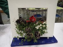 フレームに寄せ植えをつくるおしゃれな作品もありました。