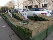 通り沿いには様々なテーマの花壇がつくられていました。