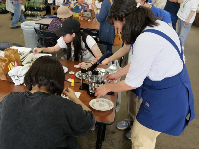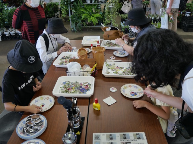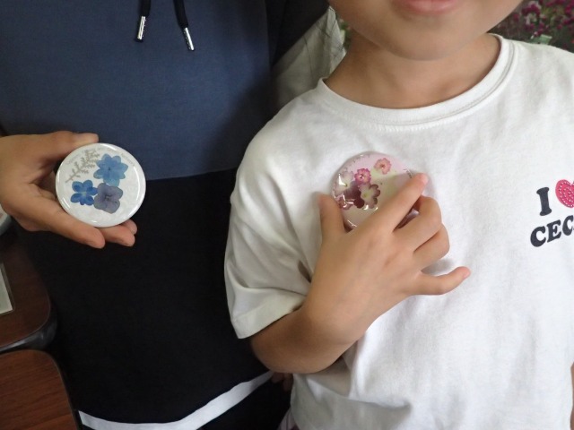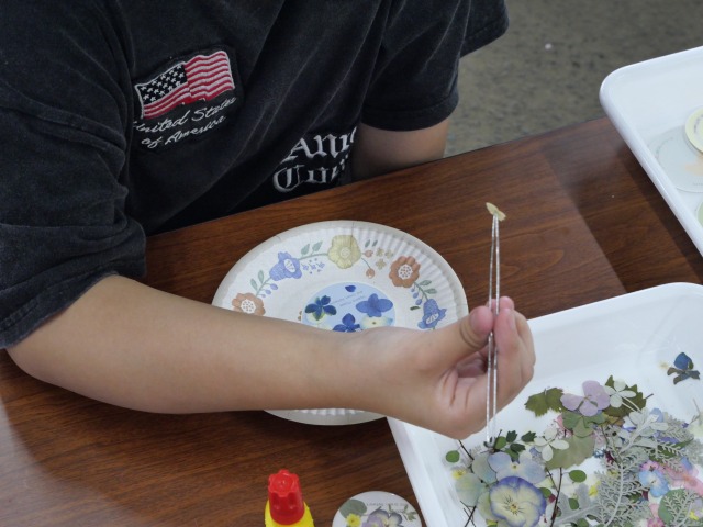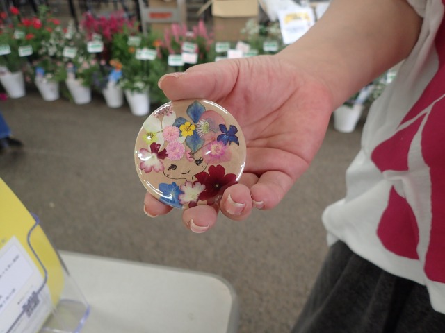 北国の鉢花まつりで、押し花の缶バッジ作りを行いました