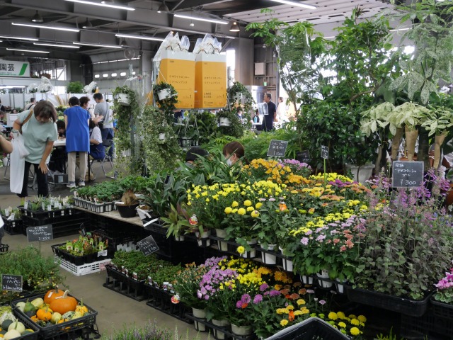 会場には、シクラメンやカルーナ等の初秋からの玄関先を飾るのに適した鉢花や観葉植物の鉢物が並んでいます。園芸資材やお野菜のお店もあって、とってもにぎやか。