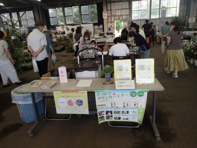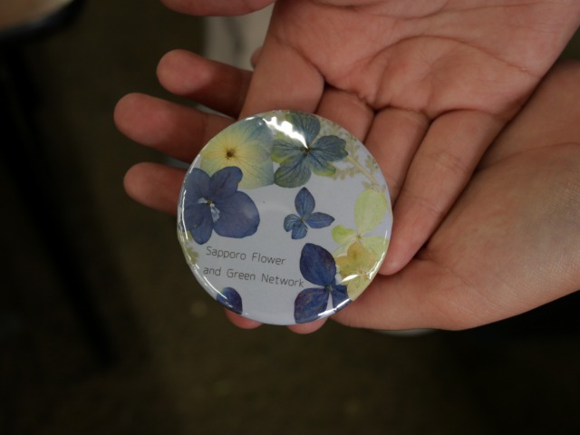 さっぽろ花と緑のネットワークのコーナーでは、押し花つくり隊が作った押し花を使った缶バッジ作りのワークショップを出展してさっぽろタウンガーデナーの広報を行いました。
