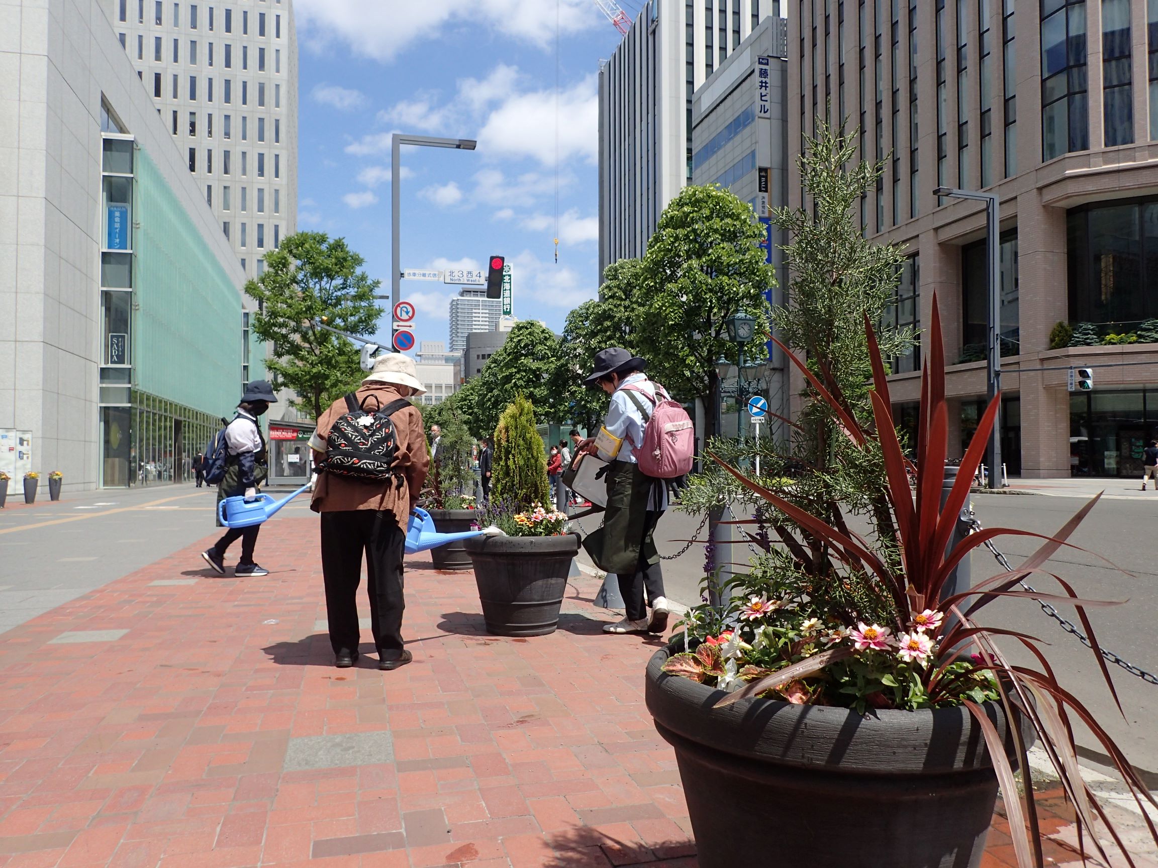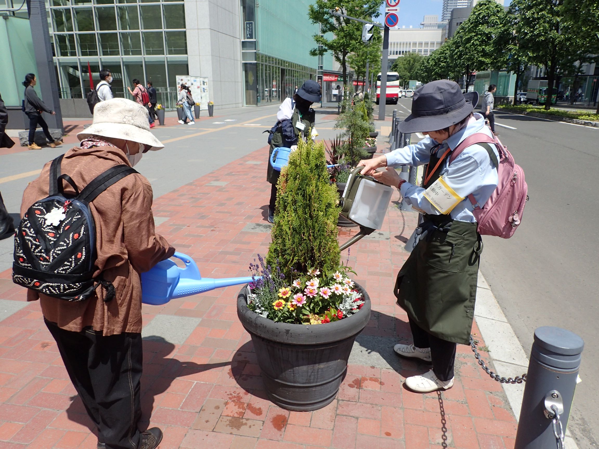2024年6月4日(火曜日)、札幌駅前通ストリートガーデンの自主活動として5名のさっぽろタウンガーデナーが水やりを行いました。