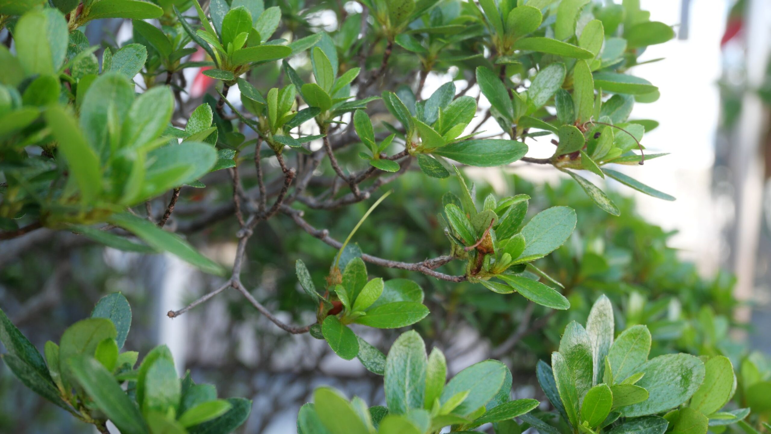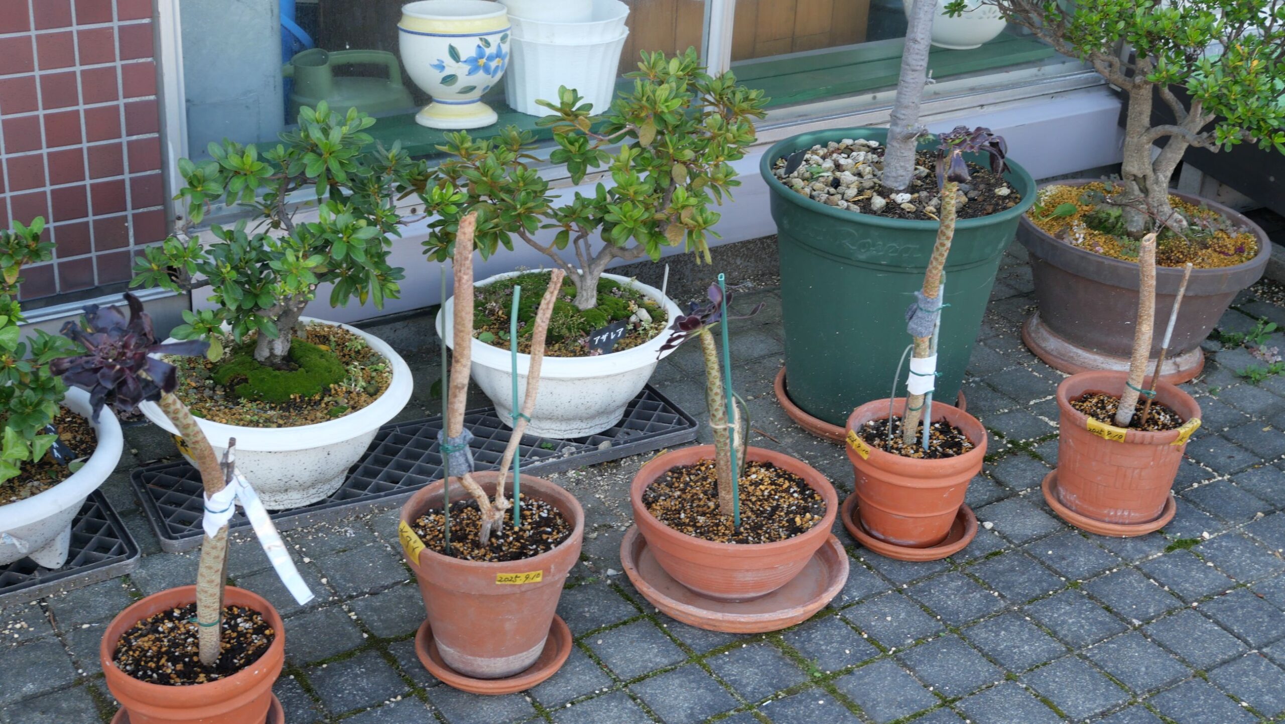 盆栽展にも出品されていた方から譲り受けたもので、枝をよく見るとすべて二股に分かれ、たいへん丁寧に剪定しながら育てられていたことが伺えます。