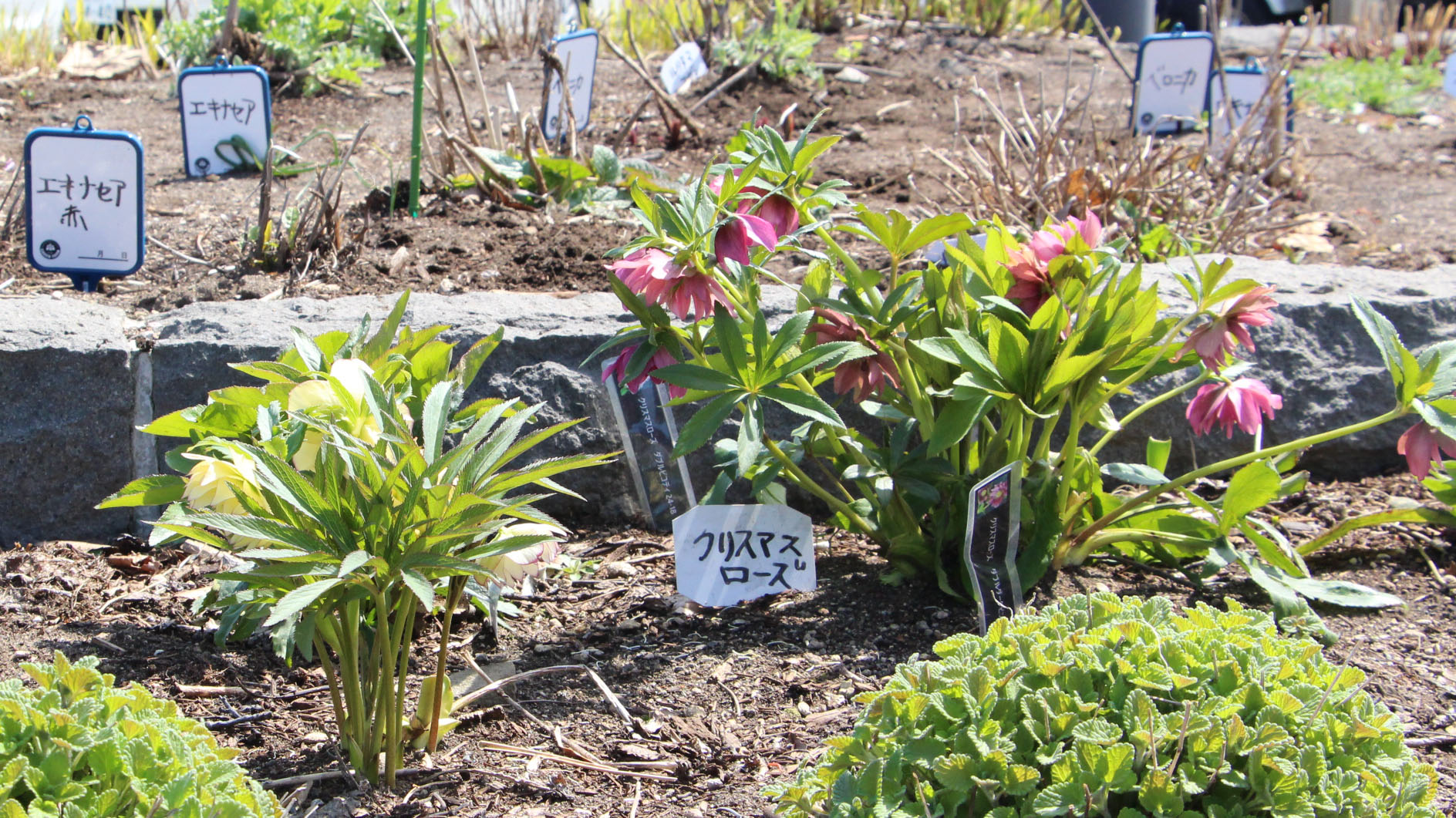 この日開花していたクリスマスローズは昨年植えたそうで、「かわいく咲いてるよね~。」「無事に咲いてよかったね~」と皆さんほっとした様子。