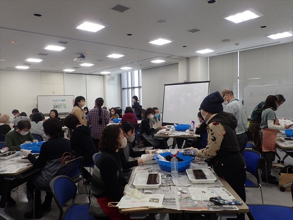 3月21日、札幌エルプラザで、種まき育苗サポーター養成講座の第3回目の実践講習会「春に向けて種から花を育ててみよう」を行いました。午前、午後合わせて48名の方が参加しました。