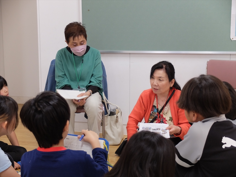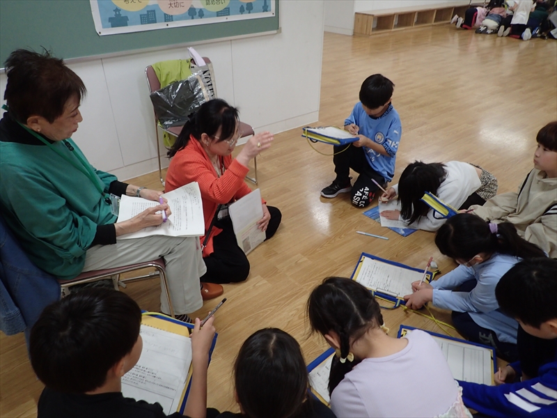 4年生は、予め花と緑のボランティアについて学び、ボランティアさんへの質問を1人1問考えていました。ボランティアさんたちは、事前に教えていただいた質問への答えを考えてこの日の授業にのぞみました。