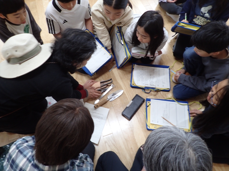 園芸道具を持参して説明している