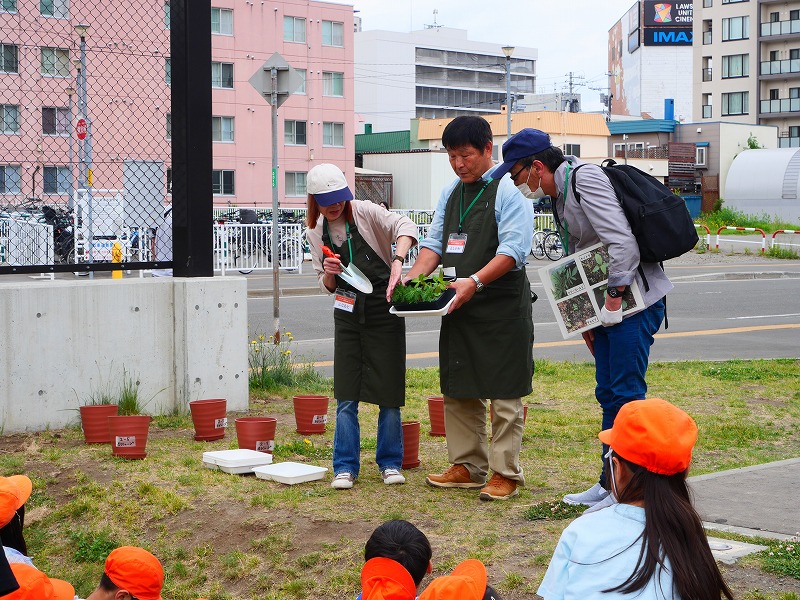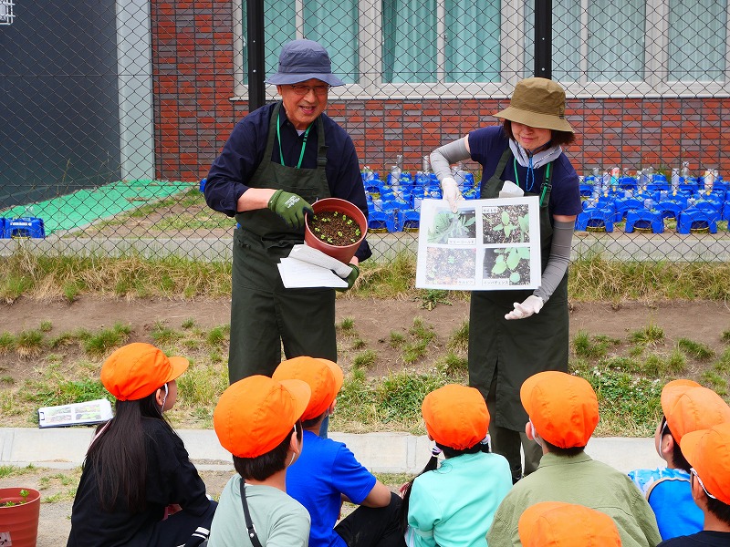 生徒さんを前にしての説明や、植え方を教えたりと、担任の先生やペアのさっぽろタウンガーデナーと協力し合いながらのあっという間の1時間でした。
