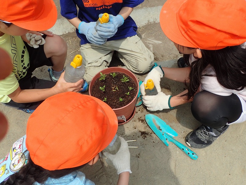 丁寧に苗の抜き方を教えると、生徒さんたちはなるべく根っこを切らないように上手に苗を抜くことができました。