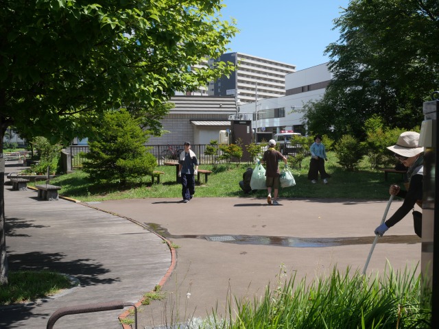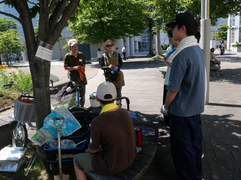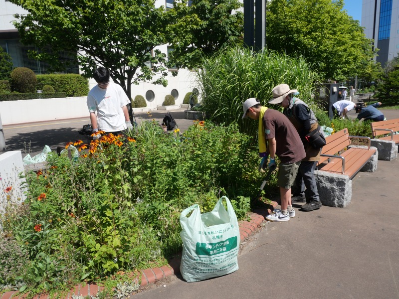 8月16日(土曜日)、登録団体「新さっぽろ花と緑と天地人」(以下天地人と省略)の活動に大麻高校1年生4人が参加して、ボランティア体験をしました。