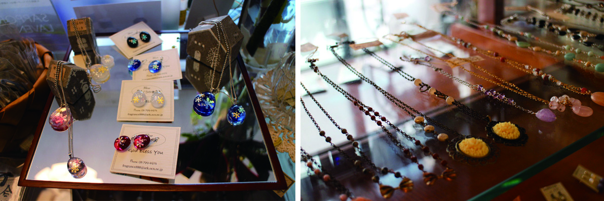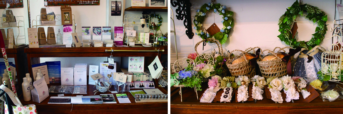 お店にはハーブティーやアロマグッズのほか、手作り作家さんのアクセサリーなど、