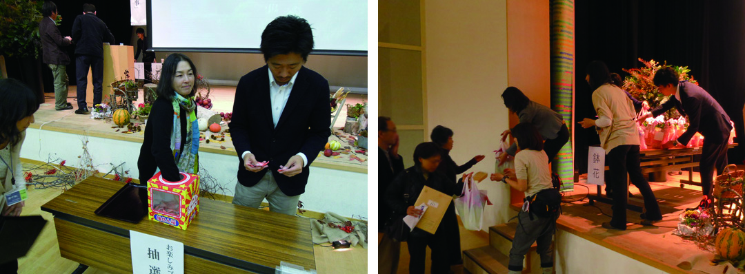 会場を飾った新鮮な野菜・果物や鉢花を抽選で来場者にプレゼントしました。