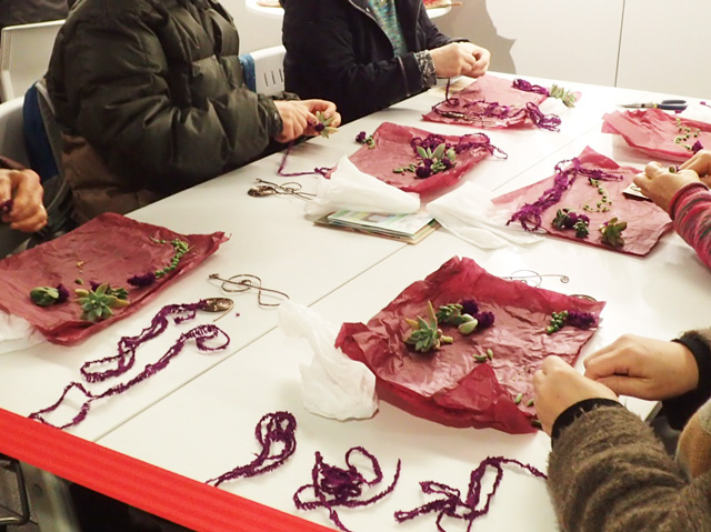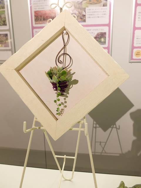 体験コーナーでは、ワイヤーと多肉植物でつくる素敵なインテリアプランツをつくりました。