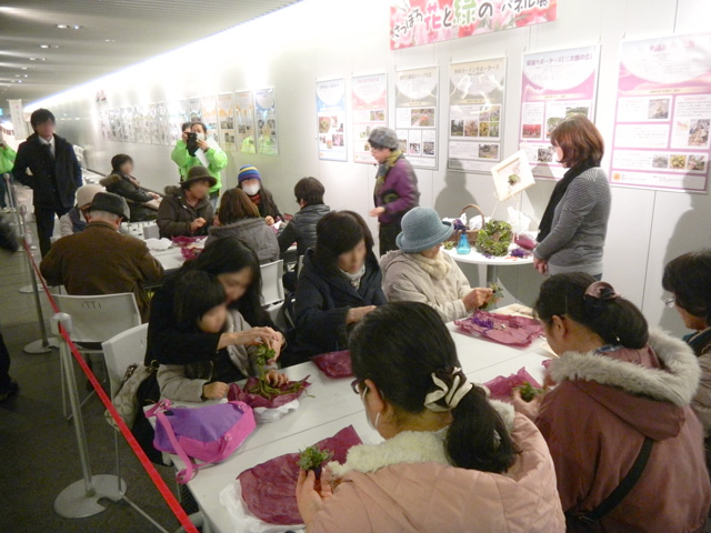 講師の宮崎恵理子さんが丁寧に教えてくださり、パパッと15分ほどでインテリアプランツが完成。緑の少ない季節に、身近なところで緑を楽しむ素敵な方法をご紹介してくださいました。みなさん楽しんでいただけたようで、満足した様子で会場を後にしておりました。