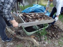 さて、それから昨年作った落ち葉の堆肥でマルチングです。