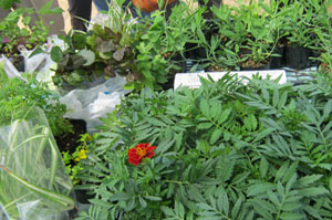 みんなで持ち寄ったタネや苗です。このほかにもたくさん集まりました!
