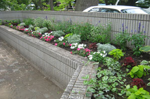 ほとんどのタネや苗を交換し、ほんの少し余った苗は、中島児童会館花壇の空きスペースに
