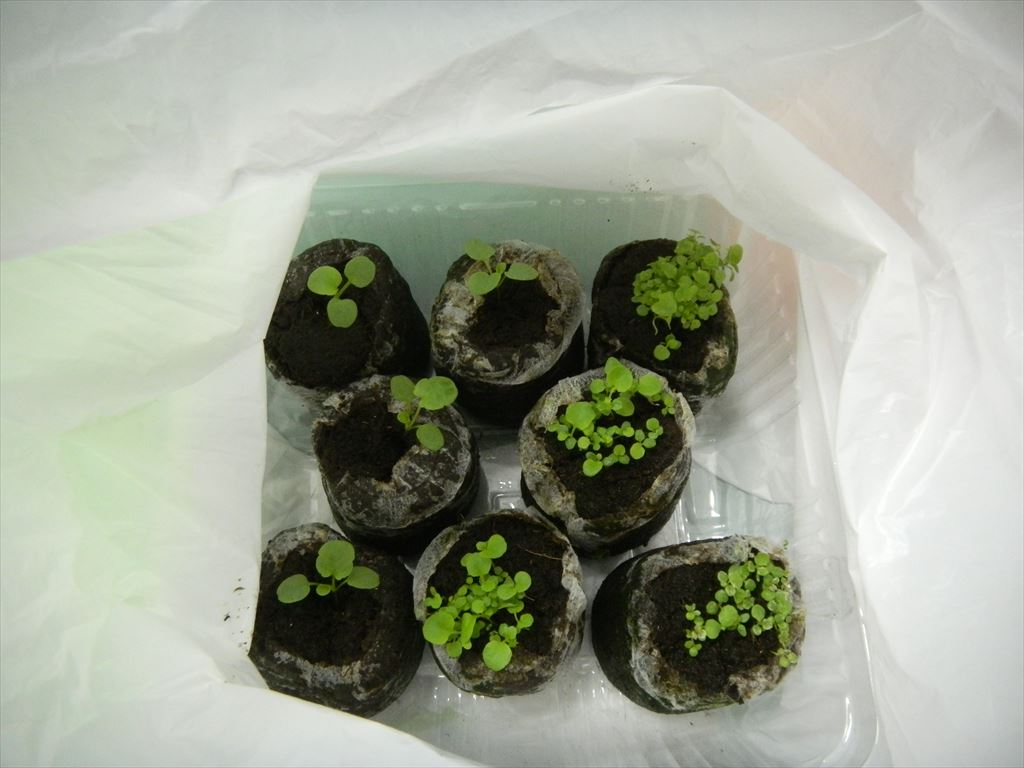 前回、メンテナンス時に併催したミニ種まき講習会で育苗開始した補植用苗の、途中経過が届きました。