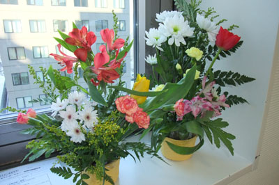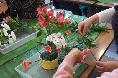 その後、それぞれの役割を交代して同じようにフラワーアレンジを作りました。