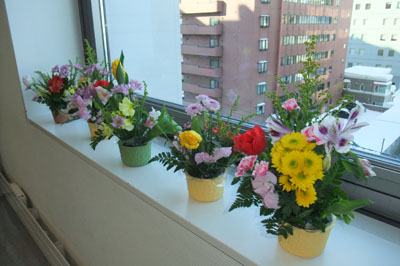 出来上がった後は、ペアになった相手の方が作ったフラワーアレンジメントをみなさんに