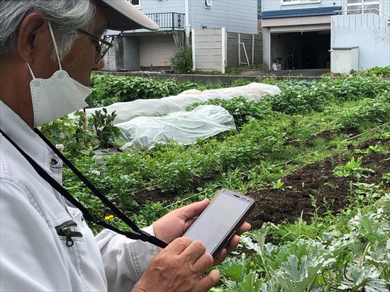 畑で活動する会員間の連絡はラインのグループ機能を使ってその場でやり取り。