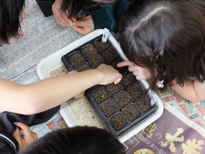 2年生は、毎日水をあげて種まき後のお世話をしてくれていました。