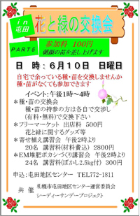 ※寄せ植え講習会、EMボカシ講習会、フリーマーケット出店は事前の申込みが必要です。