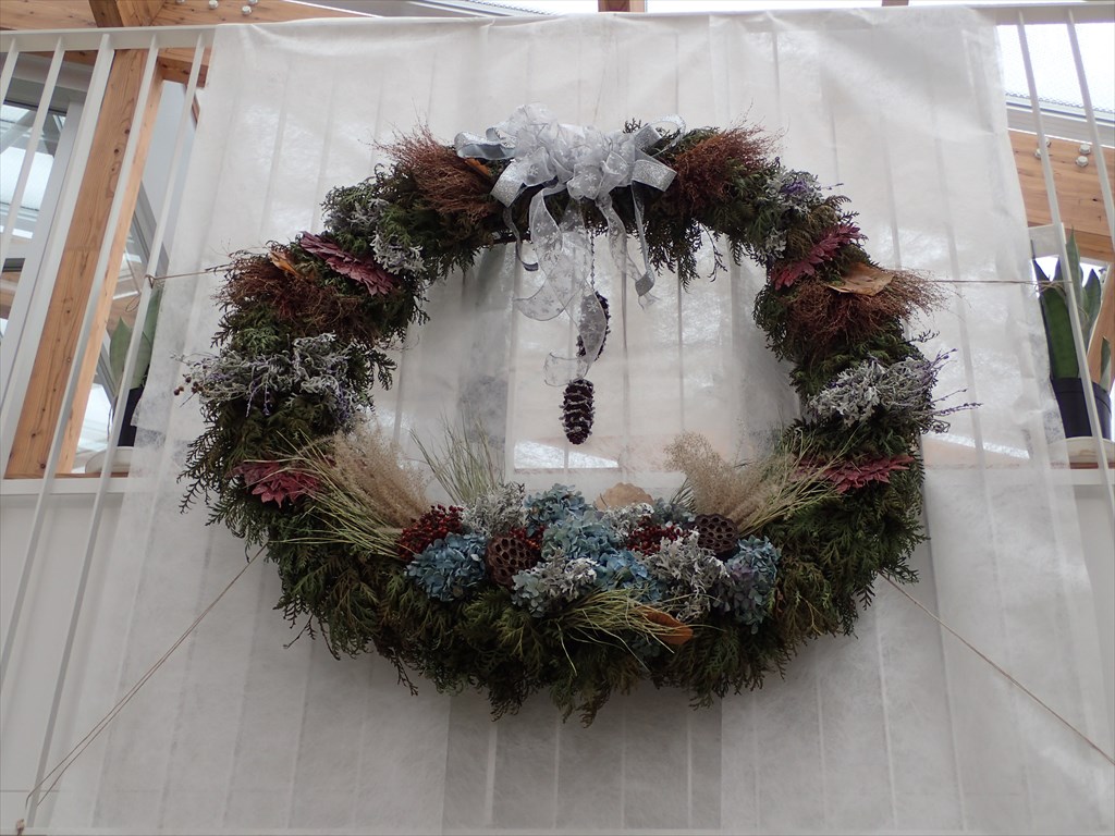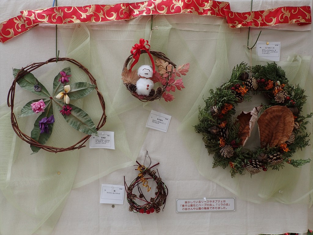 60点のリースは、豊平公園花とハーブの会のボランティアさんや職員が