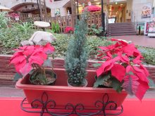 白と赤で星の形の植栽にしたり、回りにプレゼントを置く演出をしていました。