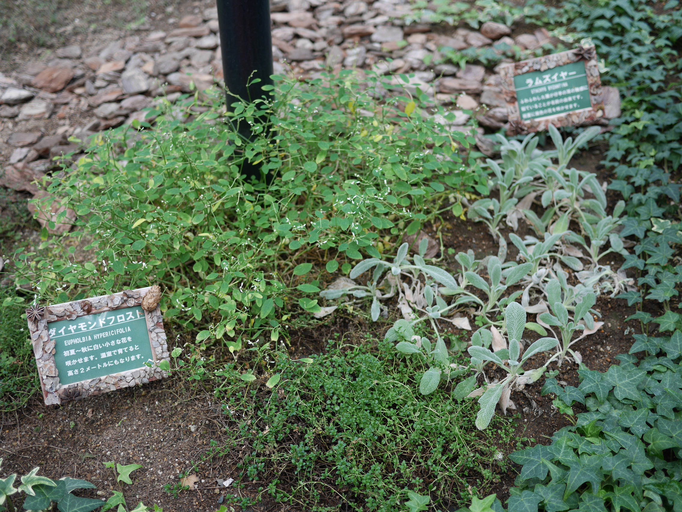 葉の色形や名前に特徴がある植物も。ちゃんとプレートに植物の解説が書かれていて、読みながら歩くのも楽しいですね。