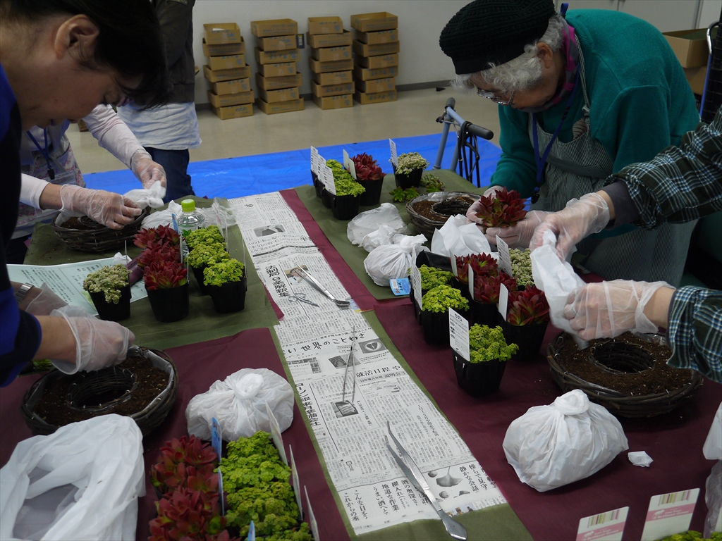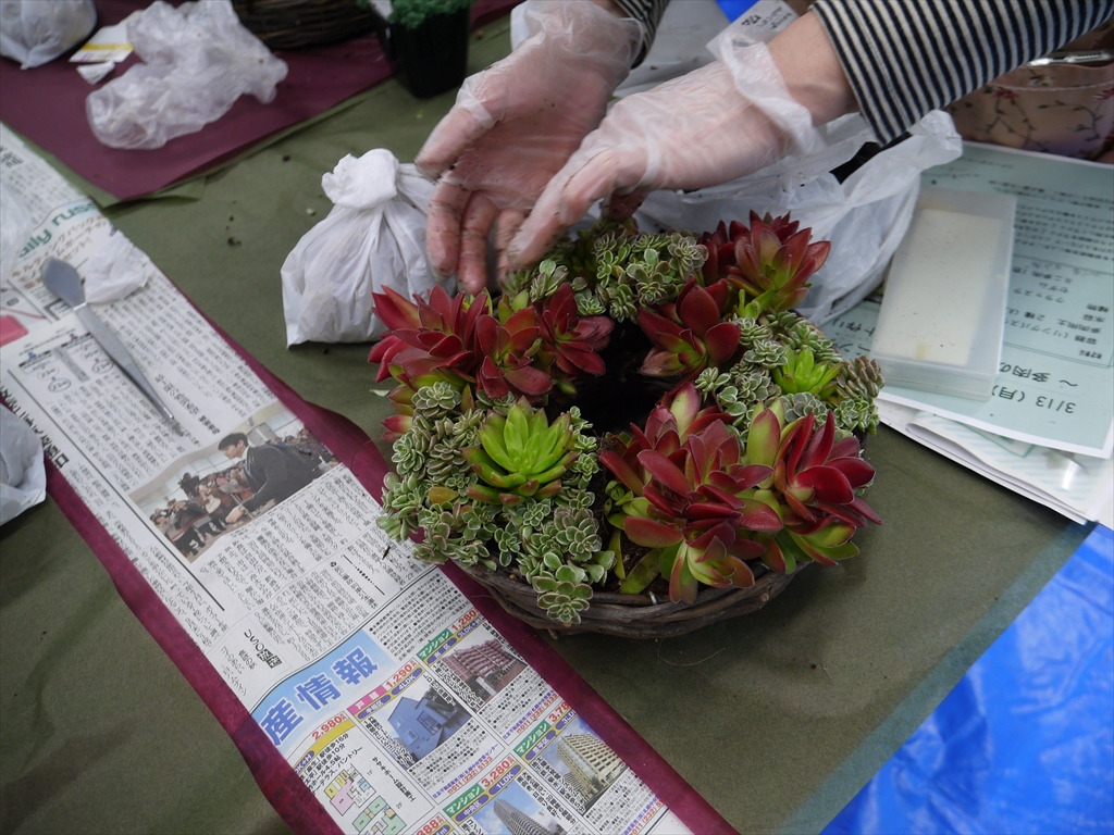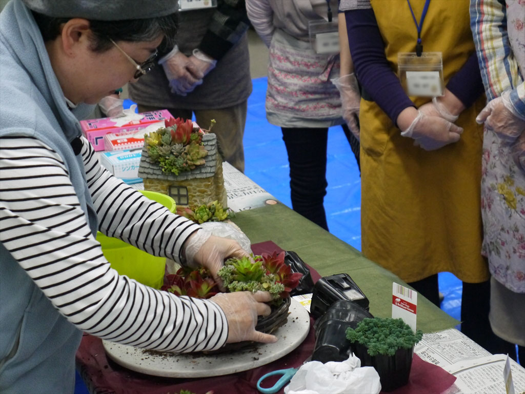 ガーデニング体験講座の内容は、「多肉植物の寄せ植えにチャレンジ」です。