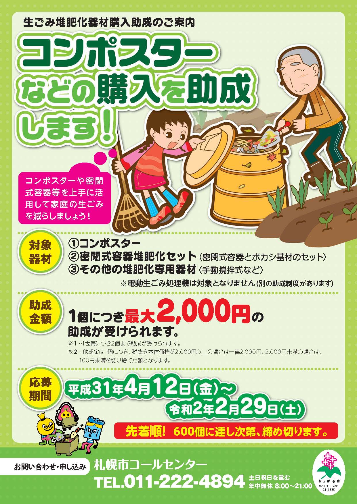 生ごみ堆肥化器材購入助成のご案内 札幌市堆肥化器材助成のチラシ裏面