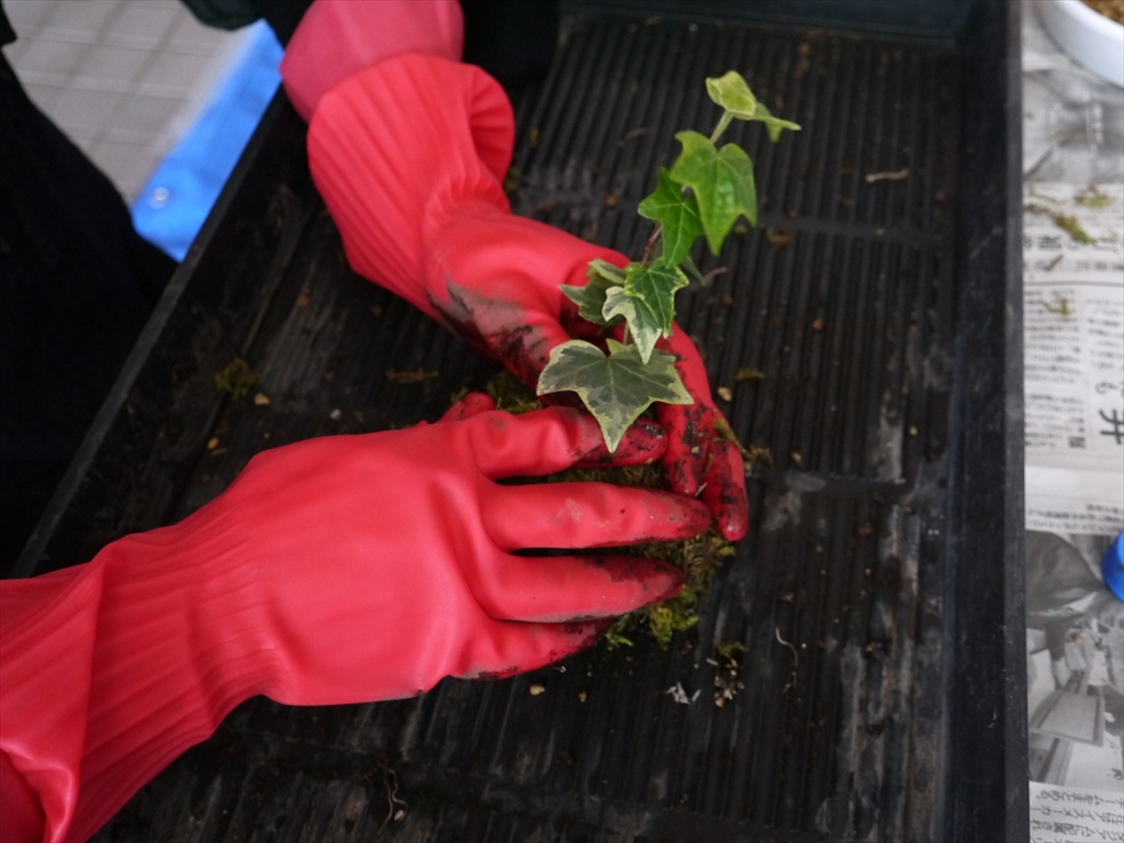 アイビーの根が長すぎる場合は、少し切って植えていました。