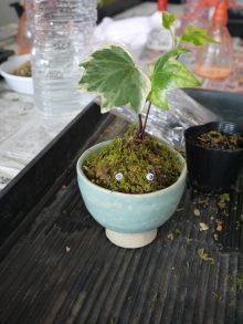ここに山野草の土を入れてアイビーを植えます。