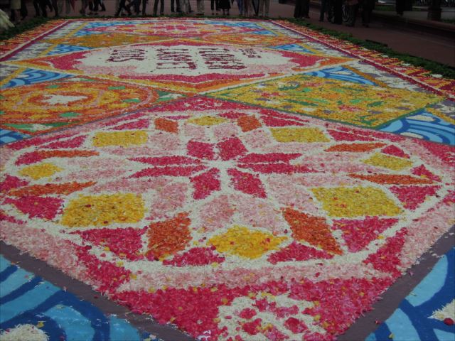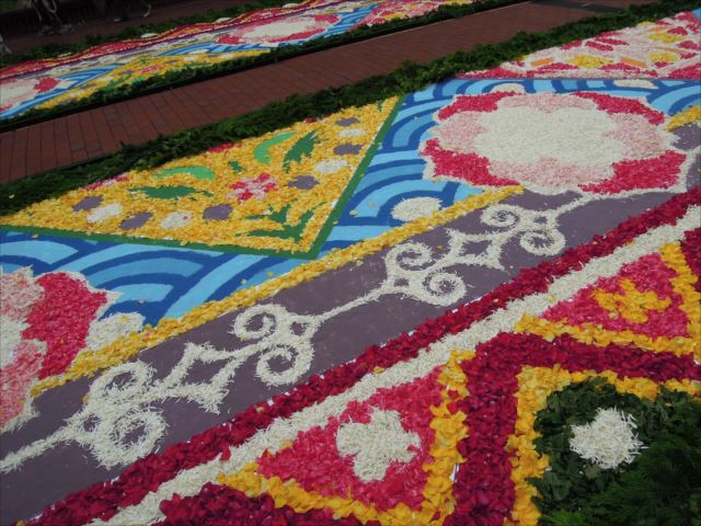 「フラワーカーペット」は、花びらや自然素材を用いて1つの大きな絵を作り上げるイベントで、ベルギーの首都ブリュッセルでは、2年に1度大きな祭典も開かれています。札幌では、札幌市北3条広場(アカプラ)のオープニング記念として昨年2014年に第1回目が開催されました。市民ボランティアや近隣地域の方々など500名以上の参加者ともに、約8万本のバラの花びらを広場に敷き詰め、色とりどりの絵を制作しました。