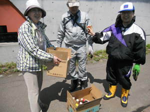 活動の中で生み出されてきたこのような様々な工夫と会の方々の入念な準備があってこその花苗植え作業ですが、すべての緑地帯への植え込みが終わるころには、すっかり疲れて、おなかもペコペコになってしまいました。