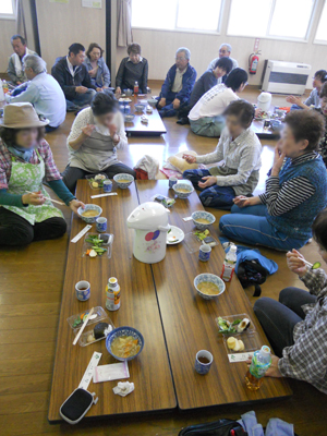 会のみなさんや協力者の方々がこしらえた豚汁やおにぎりが芸術の森地区まちづくりセンターに用意されていました。