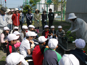 「平岡みどりの輪」の方は苗の植え方のデモンストレーションです。