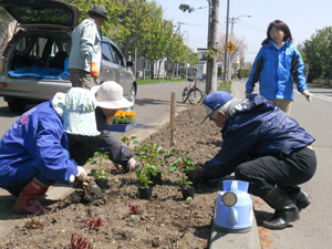 5月13日(日)は、あいの里花クラブのみなさんがJRあいの里公園駅そばのフラワーロードに1年草の花植えを行いました。