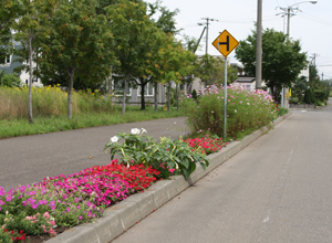 昨年から宿根草も植えられるようになったこの花壇は、年々植栽が豊かになっています。きれいな花が咲くこの花壇に触発されて、近隣の町内会の花植えが以前よりも盛んになったそうです。