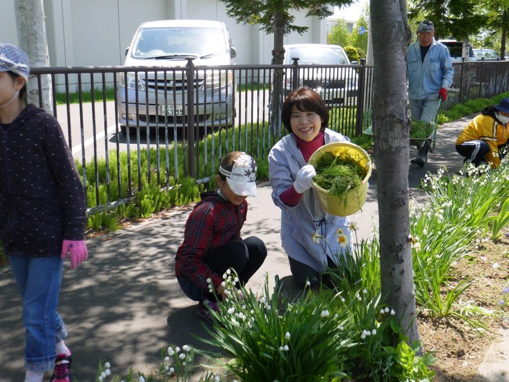 わきあいあいと楽しく作業が進み、「こんなに除草したよ!」と成果を見せていただきました。