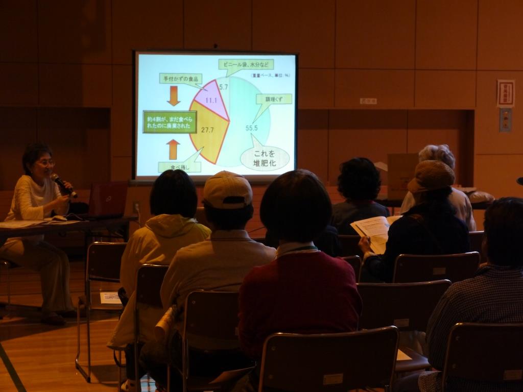 同じ会場では、生ごみたい肥の作り方などについての講演会も開催され、たくさんの参加者が熱心に話に耳を傾けていました。