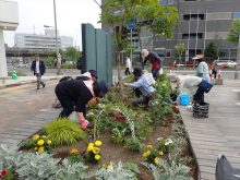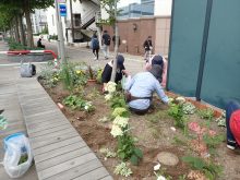 活動場所は、地下鉄新札幌駅2番出口そばの花壇と厚別警察署新札幌交番の隣の花壇です。以前この場所には花が無かったそうで、花壇の手入れをしていると、通る人が声をかけてくださいます。「きれいですね。」「お疲れ様です。」そんな声が活動しているみなさんの励みにもなるそうです。