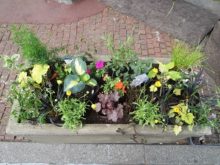 市役所入り口までのアプローチ2基、市民ホール側3基、大通公園側3基とそれぞれ違うデザインで、メンバーがひとり1つのコンテナに植栽していきました。