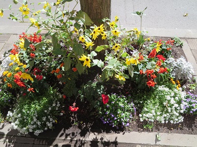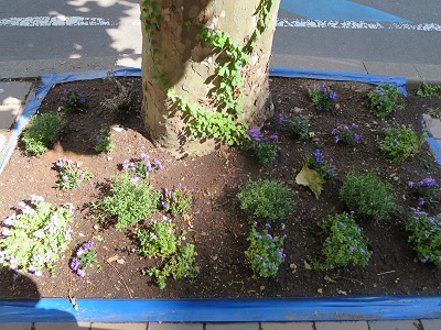 植えてある街路樹の種類や太さにも違いがあり、バラエティ豊かなます花壇です。