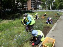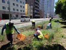 久しぶりに天気が回復した6月15日、登録団体「北8-北11フラワー創遊会」の活動を取材してきました。気持ちよい太陽の光を浴びての作業でした。