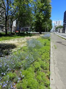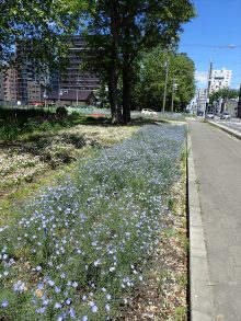 創成川通り(南進側)と創成川の間の緑地、北8条から北11条エリアにつくられている「花畑」は、ちょうどアマの見頃でした。